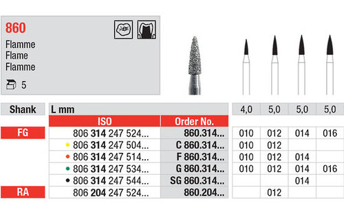 Flamformad preparationsdiamant med FG-fattning.