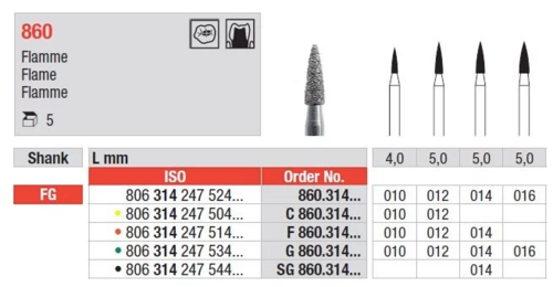 Flamformad preparationsdiamant med FG-fattning.