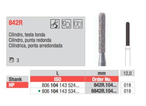 Diamant 842R/018 HP cylinder rund topp medium, 3 st