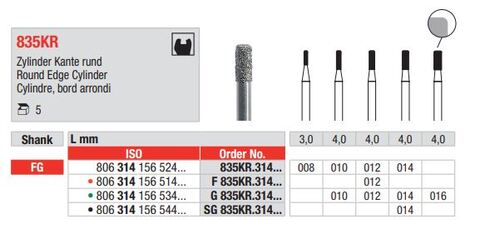 Diamant 835KR/014 FG cylinder rund kant x-grov sv,5st