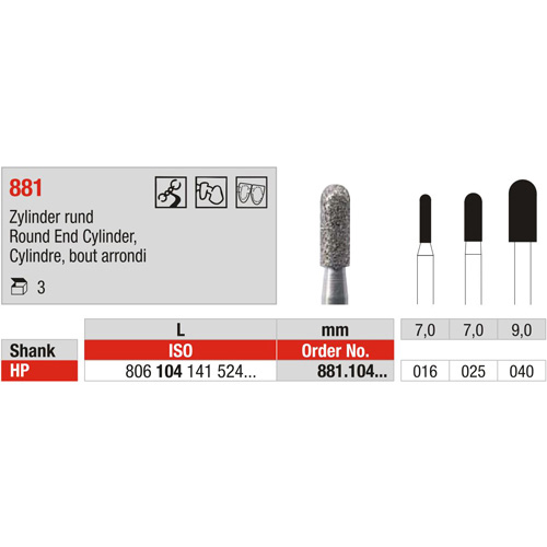 Diamant 881/040 HP cylinder rund topp medium, 3 st
