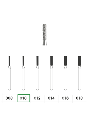 Cylinderformad preparationsdiamant med rak topp och FG-fattning. Skaft: 19 mm. Kornstorlek: Grov.