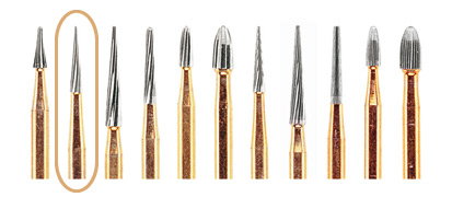 Lång koniskt guldfärgad 12 bladigt finisheringsborr för konturering och finishering för FG-fattning.