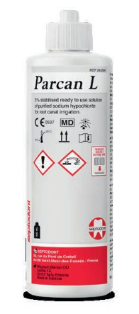 En bruksklar natriumhypoklorit 3% lösning för effektiv rotkanalsirrigation,  debridering och desinfektion.