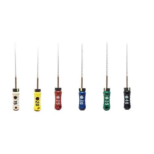 Spiraldesign som ökar successivt från spets till handtag. Färgkodade plastskaft. Nr 15-40, 21 mm.