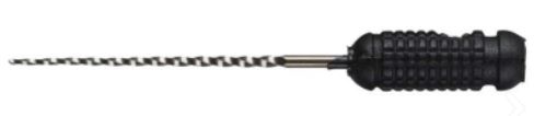 Rotkanalsfil i rostfritt svenskt stål och filstopp med öppen spiraldesign med tre skäreggar
