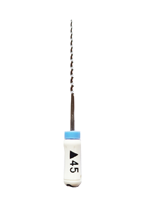 Sterilförpackad rotkanalsfil av rostfritt stål för kanalförstoring med utmärkt skärförmåga, precision och avlägsnande av debris. Trekantigt tvärsnitt. Längd: 28 mm. ISO: 45. Färgkodad: Vit.