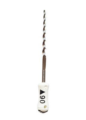 Sterilförpackad rotkanalsfil av rostfritt stål för kanalförstoring med utmärkt skärförmåga, precision och avlägsnande av debris. Trekantigt tvärsnitt. Längd: 21 mm. ISO: 90. Färgkodad: Vit.