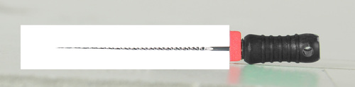 Steril K-fil av rostfritt stål med filstopp och färgkodat plastskaft.