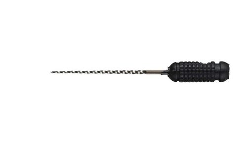 Rotkanalsfil i rostfritt svenskt stål och filstopp med öppen spiraldesign med tre skäreggar
