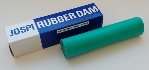 Vakuumförpackad kofferdam av latex. Heavy, mörk. Talkad.