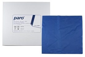 Talkfri medium blå kofferdam av latex i bit, 15 x 15 cm. Noggrant tvättad i tillverkningen för recudering av ytproteiner.
