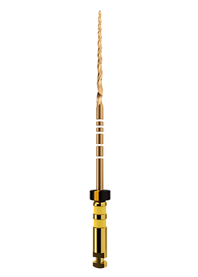 Guldfärgad roterande rotkanalsfil av specialbehandlad nickeltitan för maskinell rensning. Rotkanalsfil med konvext triangulärt tvärsnitt och progressiv taper. Säker rotkanalsfil mmed hög flexibilitet och effektiv averkningsförmåga Kort handtag endast 11 mm för enklare åtkomst. Rekommenderad hastighet 300 varv/minut. F5 - finishing, formar och vidgar mot apex. Längd: 25 mm.