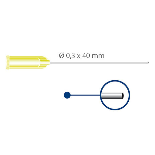 Tvärhuggen flexibel engångskanyl för endodonti, passar sprutor med Luer-fattning.