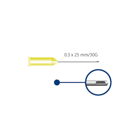 Miraject Endotec Luer spolkanyl 30 G, 0,3 x 25 mm Gul