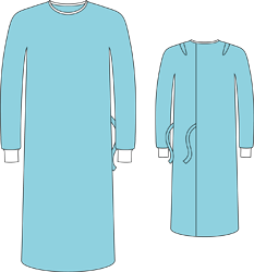 Steril operationsrock, 2 handdukar, inslagen. Vikt för att möjliggöra aseptisk påtagning. Behandlat material för ökad avstötning mot vätskor med låg ytspänning (blod)