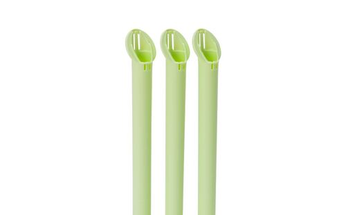Biobaserade aspiratorrör, ventilerad och med mjuka välformade kanter. Grön PE och autoklaverbar PP.