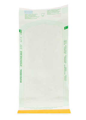 Färdigklippta sterilpåsar av papper/plast för packning av instrument vid autoklavering. Självförslutande. Grön.