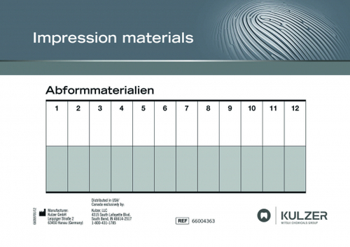 Graderat blandningsblock med 25 blad för Xantopren och Provil.