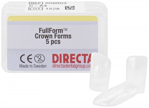 Transparenta kronformar av stark, laminerad plast. Finns med F-, OP- och C-kodning.