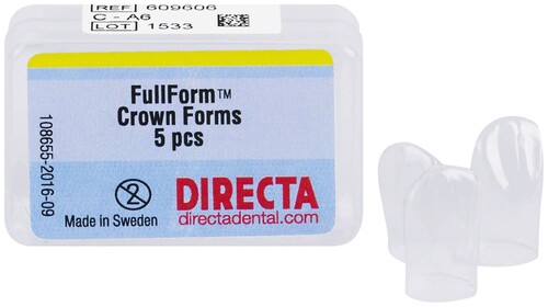 Transparenta kronformar av stark, laminerad plast. Finns med F-, OP- och C-kodning.
