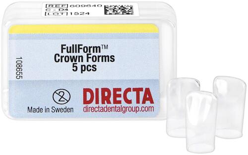 Transparenta kronformar av stark, laminerad plast. Finns med F-, OP- och C-kodning.