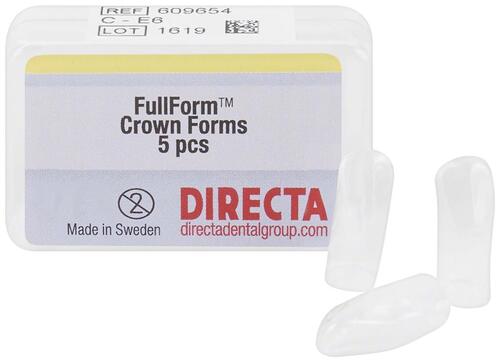 Transparenta kronformar av stark, laminerad plast. Finns med F-, OP- och C-kodning.