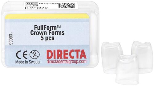 Transparenta kronformar av stark, laminerad plast. Finns med F-, OP- och C-kodning.