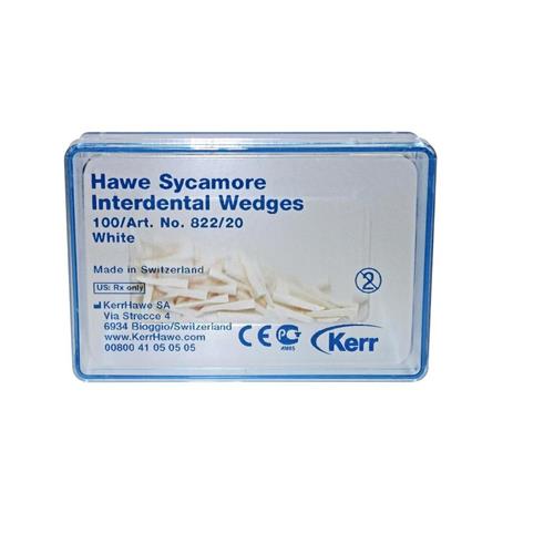 Färgkodade anatomiskt utformade interdentalkilar av sycamore trä.