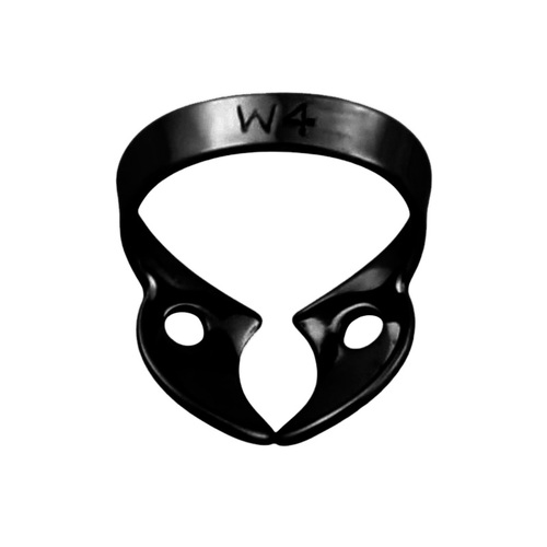 Black coated: Den svarta beläggningen på kofferdamklammern minskar bländning och förbättrar synligheten under behandlingen.