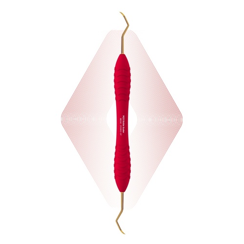 Dubbeländad slipfri universalscaler med belagda guldfärgade arbetsdelar av högkvalitativt 440C rostfritt stål som genomgår en avancerad kryogen värmebehandling för ökad hårdhet och bibehållen skärpa. Denna teknik säkerställer upp till 3 gånger längre skärpa jämfört med ett standardinstrument.