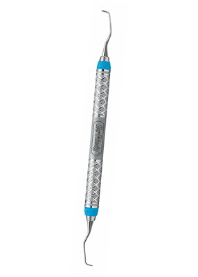 Gracey 11/12, mesiala ytor molarer. Tandstensinstrument tillverkad av specialbehandlad stållegering. Detta ger instrumentet längre livslängd eftersom det inte behöver slipas lika ofta. Diamantklätt skaft för optimalt grepp. Färgkodade.