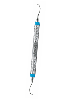 Gracey 13/14, för distala ytor molarer. Tandstensinstrument tillverkad av specialbehandlad stållegering. Detta ger instrumentet längre livslängd eftersom det inte behöver slipas lika ofta. Diamantklätt skaft för optimalt grepp. Färgkodade.