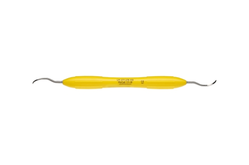 Universalcurette med stadigt jämnbrett blad och styv hals för avlägsnande av supragingival och subgingival tandsten, särskilt lämpad för stora molarytor.