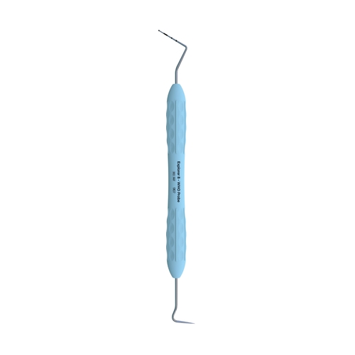 Sond 8 – WHO CP är ett dubbelsidigt diagnostiskt instrument med knopp som kombinerar en rak sond med en WHO fickmätningssond med en 0,5 mm kulspets. . Dess fint avsmalnande arbetsände ger utmärkt taktil känslighet, vilket möjliggör noggrann diagnos av tand- och mjukvävnadstillstånd.