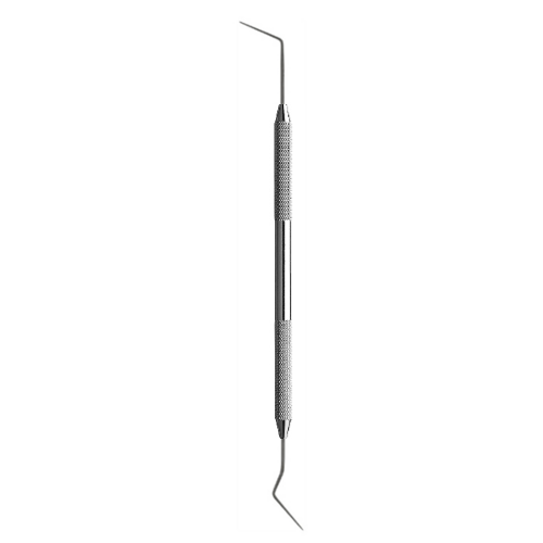 Dubbeländad endodontisond i rostfritt stål.