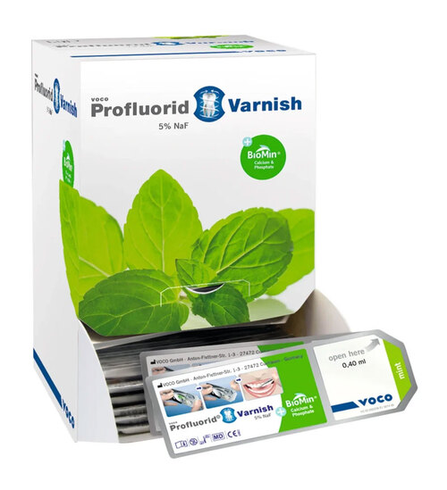 1 ml VOCO Profluorid Varnish innehåller 50 mg natriumfluorid motsvarande 22,6 mg fluorid.