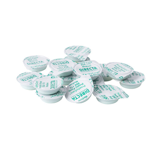 Profylaxpasta i medium grovlek med RDA 170 (70 micron) i praktisk singledos förpackning.