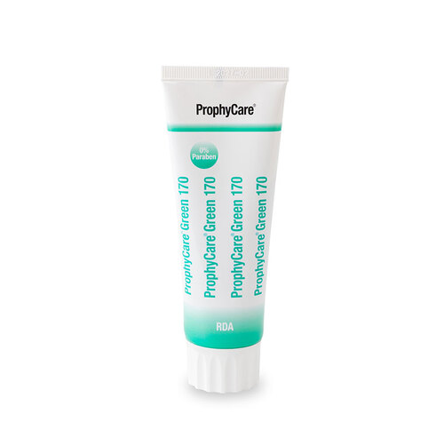 ProphyCare RDA 170 är en putspasta som lämpar sig bra att börja med när en grövre pasta inte behövs. För tjocka lager av plack och missfärgade ytor. Innehåller 0,1% fluor.