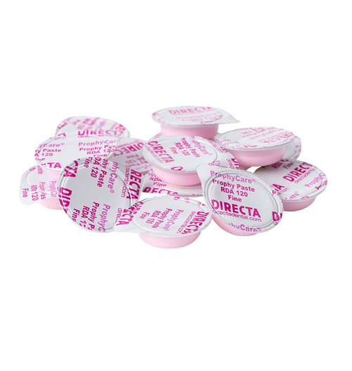 Parabenfri profylaxpasta med RDA 120 (20 micron) röd, fin, i praktisk singeldosförpackning.
