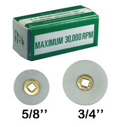 Brass Center Discs. Vita plastade sandtrissor med snap-on fattning. Storlek 3/4", 19 mm. Grovlek: Fin.