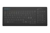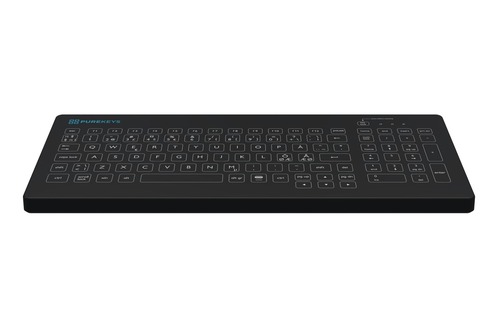 Svart kompakt tangentbord med trådlös anslutning designat för användning i medicinska miljöer