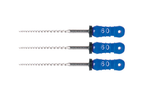 Steril rotkanalsfil enligt Hedström av rostfritt stål med filstopp och färgkodat skaft.